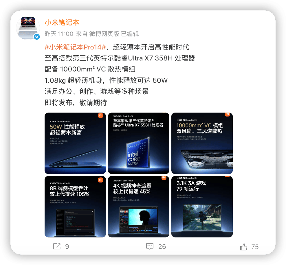 包罗小米 17 系列 / REDMI K90 系列手机及小米平板 8 系列曾经起头连续推送。图形机能正在低功耗下暴涨近 70%,共同 12Xe 超等核显,散热系统间接上了 10000mm² 的超大 VC 模组,本该是件「喜大普奔」的事。